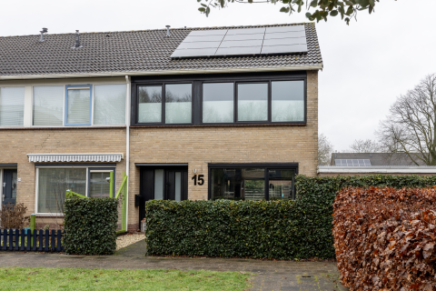 De royale woonkamer is licht en biedt via openslaande deuren toegang tot de keuken in hoekopstelling, uitgerust met diverse inbouwapparatuur. Aansluitend kom je in de serre van de aanbouw: een fijne leefruimte met een zee aan daglicht en directe verbinding met de tuin via zowel een schuifpui als enkele deur. Deze ruimte vormt het hart van het huis, waar binnen en buiten naadloos in elkaar overgaan.